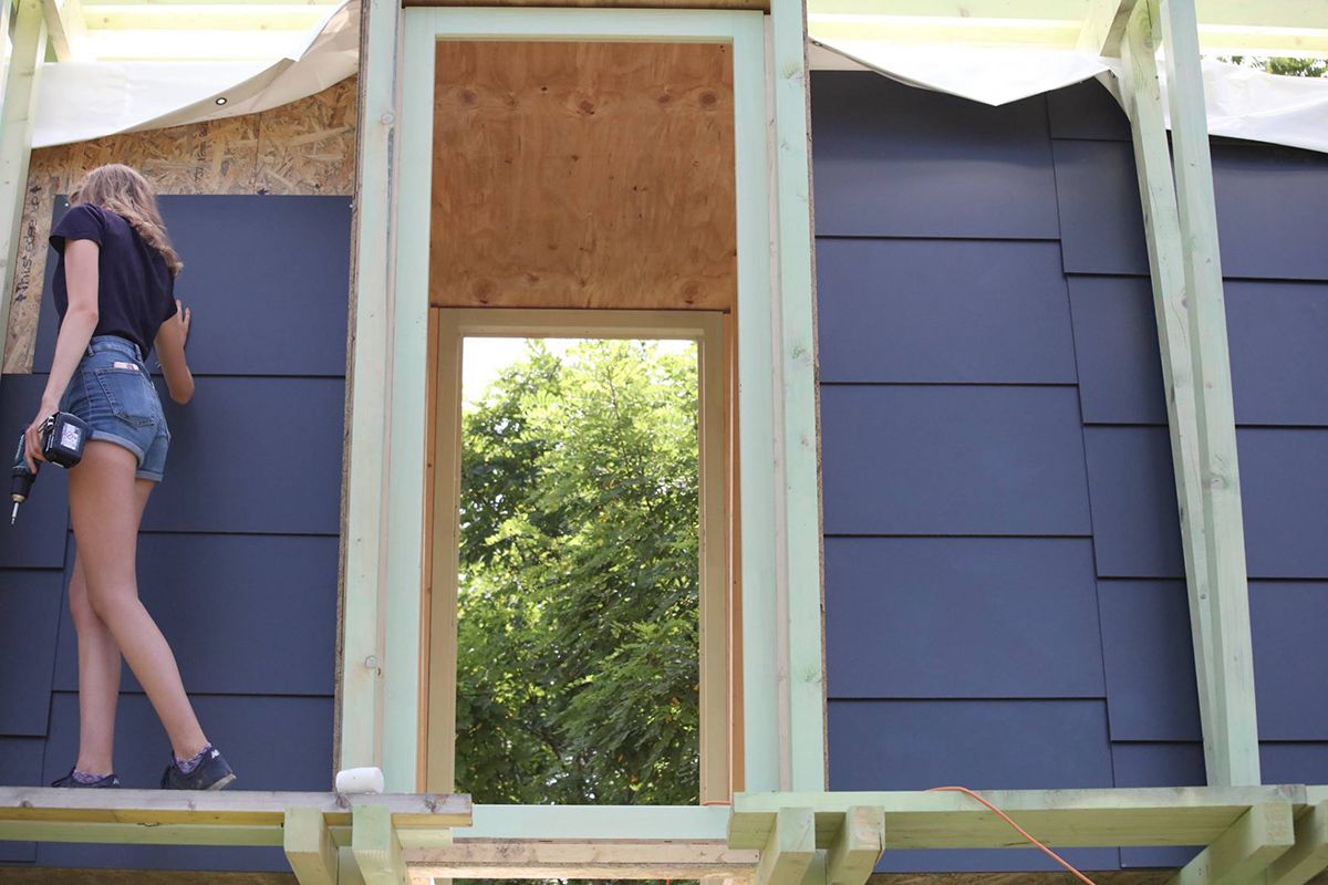 A leendő építészek a táborban két új technológiával is megismerkedhettek. Kísérleti jelleggel kipróbálhatták a LafargeHolcim cementgyártó cég Alirium nevű új anyagát és a Beger Házak előregyártott fapaneljeit is.