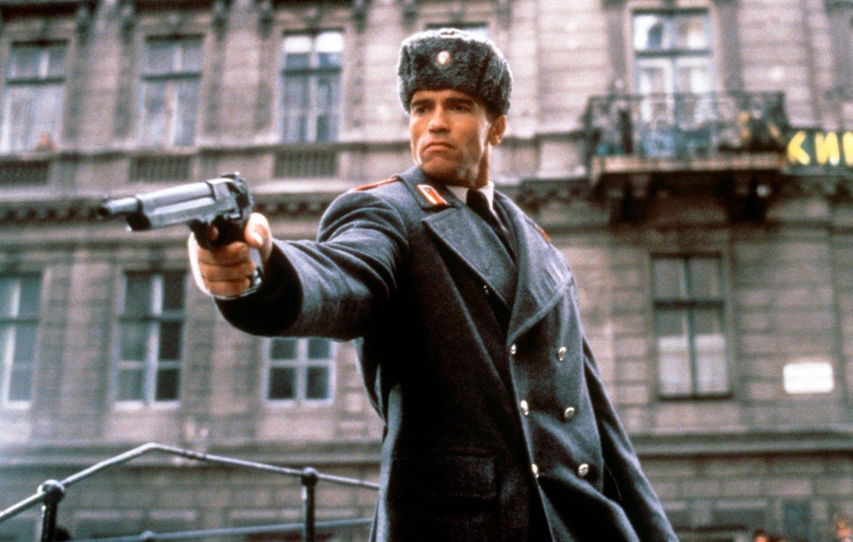 Arnold Schwarzenegger egy budapesti utcán a Vörös zsaru forgatásán – Fotó: Profimedia