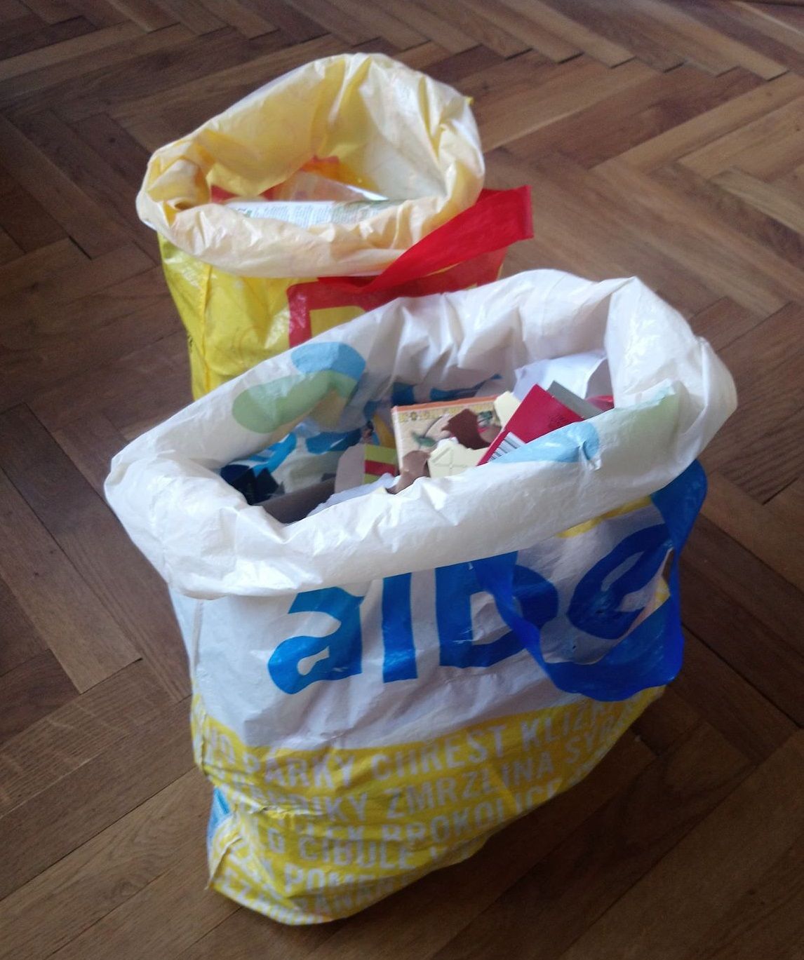 Mivel képtelenség mindenről beszámolni, jöjjön egy fotódokumentáció, amely a 30 nap alatt felgyülemlett műanyag- és papírszemetünket mutatja be. Előbbit két külön zsákban gyűjtöttem, hogy lássuk, mi az, amit esetleg novemberben vettünk, és mi az, ami a korábbi beszerzés ellenére a hónap során került a szelektívünkbe.
