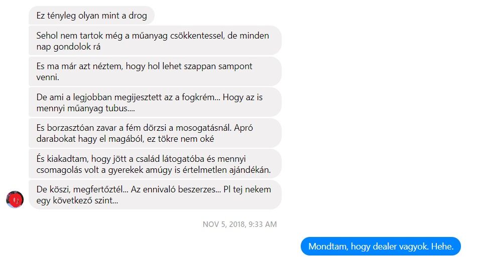 A műanyagcsökkentéssel pontosan ugyanaz az ábra, mint a tudatos fogyasztás más területeivel: a végén behozza az időt, energiát és pénzt. Nem vitatom, a komolyabb, elszántabb változtatáshoz anyagi bázis is kell. Ha valaki a létminimumon él, akkor a legolcsóbb elérhető árut fogja megvenni. A pénz mellett pedig ott van még az idő és az infrastruktúra kérdése is. Egészen megható volt látni, amikor egy háromgyerekes apuka fotót küldött néhány új szerzeményükről. Sem ő, sem a felesége nem fog tudni külön utakra időt szakítani, de mégis, a maguk keretei között tettek egy próbát. Egy, a Velencei-tónál élő anya pedig arról írt, hogy bár eddig nem szerette a nagy brit áruházláncot, betért, hogy műanyagcsomagolás-mentes WC-papírt vegyen. A dolog nagyon bevált, a guriga tovább tart, mint a mutatósabb, zacskós társai. Úgyhogy most kevesebbszer kell papírért rohangálnia.
