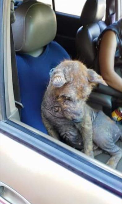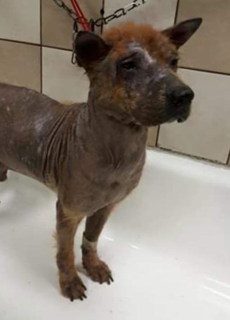 Amikor rátaláltak a mexikói utcán az augusztusi nap alatt aszalódva, a kutyus olyan volt, mint egy dermedt kőszobor. Csontsoványra fogyott, a szőre kihullott, és mozdulni is alig bírt. A rémült kutyát Karla Solisnak sikerült az autójába csábítania és egyből állatorvoshoz vinnie.