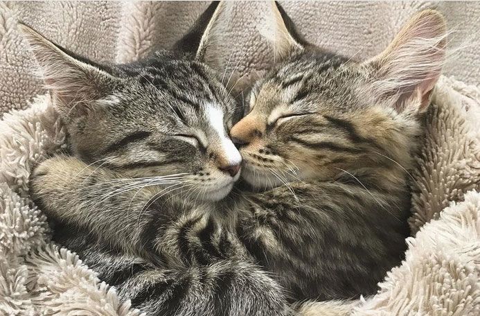 A macskakölyköket együtt találta meg az utcán egy járókelő és a menhely dolgozói szerint elválaszthatatlanok. Egy takaró alatt, egymáshoz bújva alszanak, együtt játszanak, esznek. Így a pár úgy döntött, vagy mindkettőjüket vagy pedig egyiküket sem viszik haza, elválasztani ugyanis nem volt szívük őket egymástól. További barátkozás után végül természetesen a mindkettőjüket hazaviszik opcióra esett a választásuk.