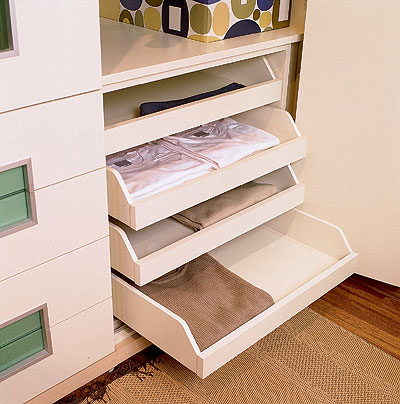 Mindkét szekrény korlátlan „pakolási” lehetőséget kínál, hosszában bővíthető, kihúzható nadrág-, nyakkendő-, cipő- és zoknitartóval szerelhető fel. A hagyományos görgős fiókok mellett ún. „angol fiók”-kal is kiegészíthető. Egységes, határozott arculata van a bútorcsaládnak, szinte korlátlanul variálható, nagyon sok funkciót le tud fedni a lakásban.