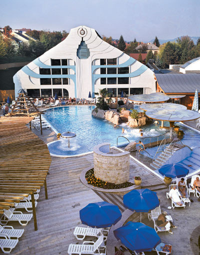1000 négyzetméter vízfelület, mediterrán jellegű napozókerttel körülvett és sokféle élményelemmel felszerelt szabadtéri élményfürdő, impozáns méretű fedett uszoda- hozzátartozó szauna, aromakamra, gőzfürdő, tepidárium, sóbarlang, wellness medence, római kori luxus-fürdők hangulatát idéző felújított termálfürdő, pezsgőfürdő, aroma- és fényfürdő, hideg vizes Kneipp medence kellemes időtöltést ígérnek.