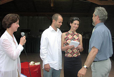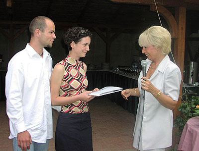 A közös életet kezdő Zizu és Zima vitte el a többit. Hifitorony, hálószobabútor, Lush kézzel készített kozmetikumok garmadája s a menyasszonyi ruhaköltemény, mely – láss csodát –centire passzol Zizura. A díjátadó során az ifjú párról nem csak az derült ki, hogy szerelmesek, de adakozóak is: megosztották örömük a többiekkel, s szétosztották köztük a kozmetikumokat és a wellness-hétvégét, amit sorok írója és szerkesztőtársai, a jelenlévő szponzorok, a többi pár és barátaik, valamennyi összegyűlttel egyetemben hangos tapssal viszonzott. A rengeteg ajándék esőként záporozott Zizu és Zima fiatal üstökére. Igazi eső viszont nem esett, csak lógott a lába, s ez külön pikáns feszültséget kölcsönzött az estének, mely diófák és meggyek árnyéka alatt lepte meg a társaságot,
