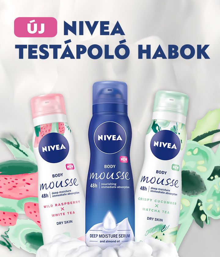 A NIVEA új testápoló habjainak krémes textúrája olyan lágy, akár a tejszínhab – nem csoda, ha azonnal beleszeretsz majd! A klasszikus, Intenzív testápoló hab mellett a termék uborka és matcha tea, illetve vadmálna és fehér tea illattal is elérhető. Azonban illattól függetlenül mindhárom hab különleges módon ápol, és gyorsan felszívódik ragadós, zsíros érzet nélkül.