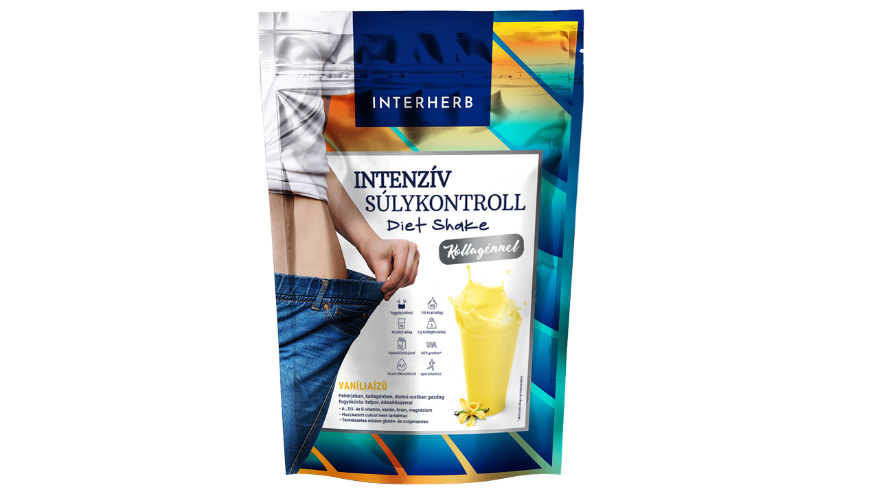 - Intenzív Súlykontroll Diet Shake 115kcal/adag – Fehérjében és rostokban gazdag, alacsony energiatartlalmú diétás shake, hozzáadott cukor nélkül. Különlegessége a benne megtalálható nagymennyiségű kollagén szépségmolekula. Gazdag összetételében emellett a vitaminok, ásványi anyagok segítik a vitalitás fenntartását, miközben a rostok teltségérzetet biztosítanak. Három ízben (csokoládé, vanília és eper) elérhető, így változatosan illeszthető be a mindennapokba. Kiválthat főétkezést, vagy kellemes desszertként is elfogyaszthatjuk.