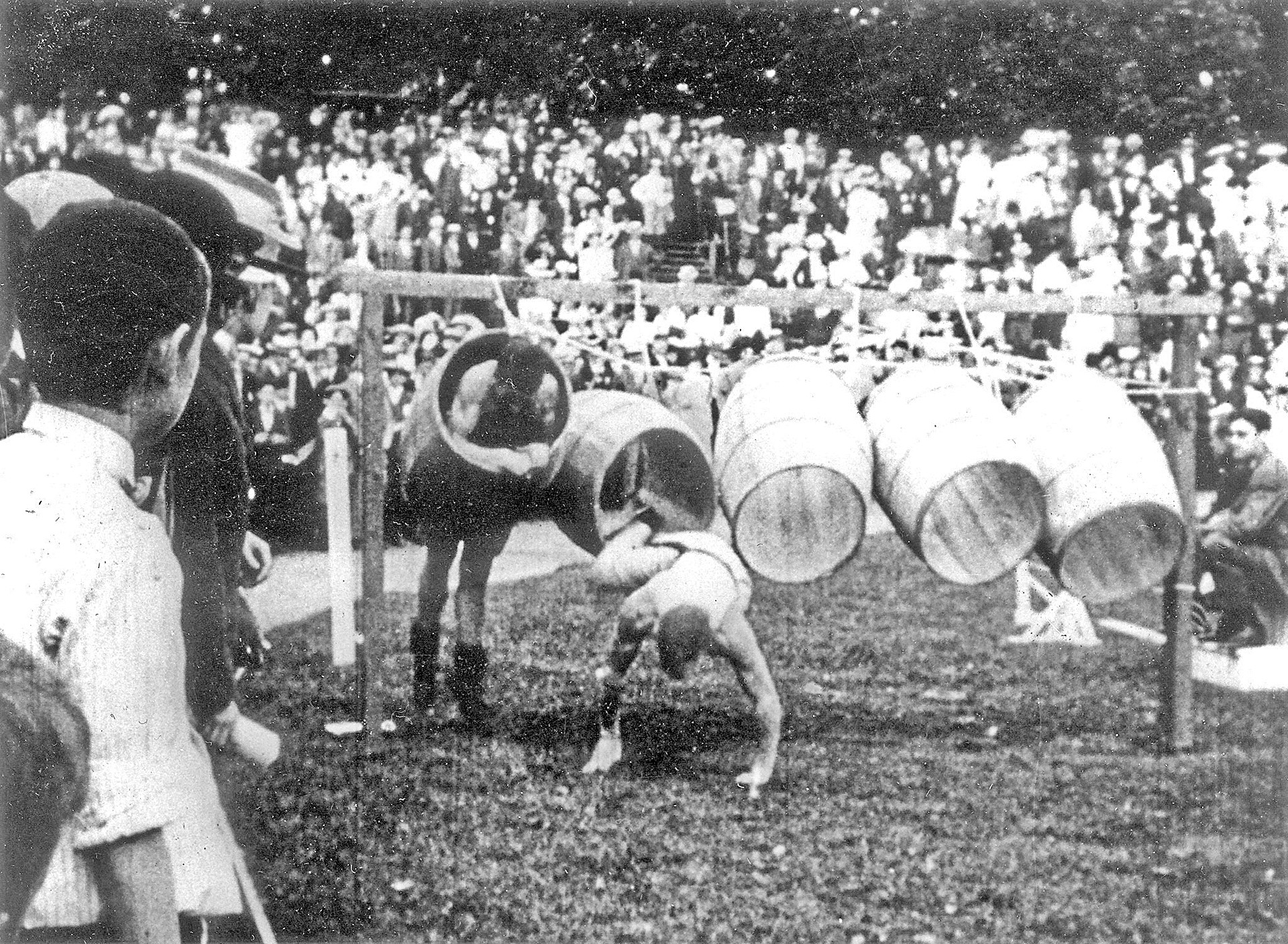 Hordó ugrás az 1904-es St. Louis-i olimpián (Fotó: ullstein bild/ullstein bild via Getty Images)
