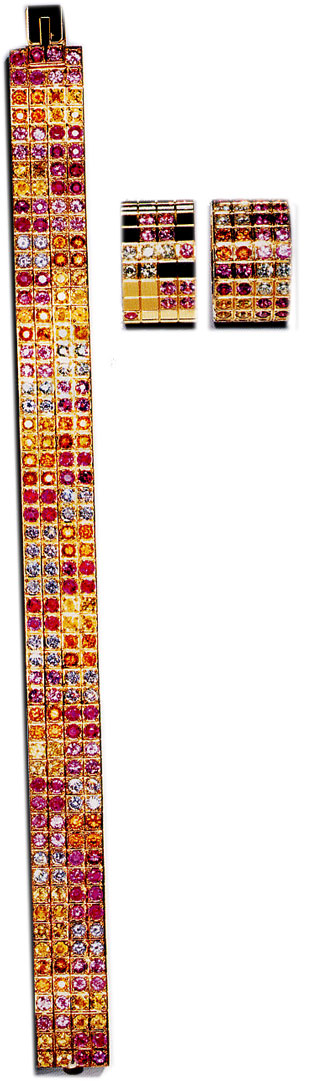 Kiegészítőnek és ráadásnak a sárga-piros-pink csupastrassz karkötő és fülbevaló jöhet.