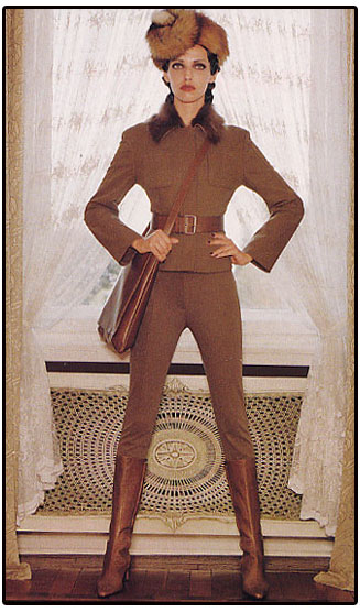 A kosztümökön gyakoriak a bőrdíszítések és a szőrmerátétek. Kiegészítőként hosszú, kötött sálat vagy selyemstólát viselhetünk.
