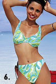 6. A fürdőruháknál a színek és minták a meghatározó szerepűek. A világos színű, valamint a nagyléptékű mintás, például virágos vagy vízszintes csíkos bikinialsó domborúbbnak mutatja a feneket.