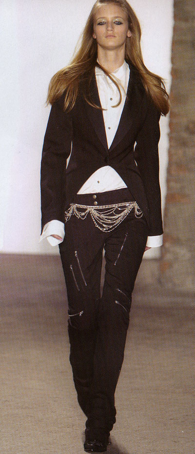 Az extravagáns megjelenés híveinek való a derekat szorosan átölelő, csípőnél kétoldalt kiszélesedő öv, mely több csattal záródik. A fémlánc öv egy- és többsoros változatban továbbra is divat, ez főként fekete ruhaneműkön mutat jól.