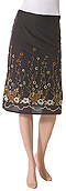 A csípőig sima, onnan kis rakásokkal bővülő maxiszoknya ápol és eltakar, ideális körte alakúaknak.