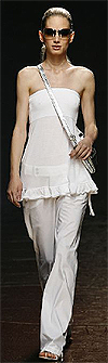 A nadrágok közül a lengő szárú, megkötős derekú modelleket a legkellemesebb viselni a nagy melegben. Ezek szintén társíthatók romantikus stílusú felsőrészekkel.