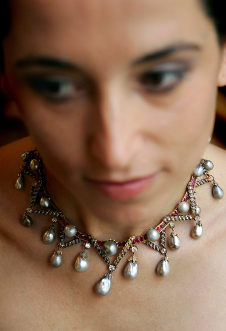 Diana hercegnő imádta a gyöngysorokat – többet is birtokolt. Volt neki egysoros, kétsoros, három, négy, öt, és hat is, Az egyik kedvence az a háromsoros, gyöngycsatos volt, amit a 18. születésnapjára kapott az apjától. De a legszebb mégis az a hétsoros gyöngysor, aminek a csatja egy hatalmas, kék zafír bross volt, amit nászajándékba kapott az anyakirálynőtől, Károly herceg nagymamájától. A brossból a lánc csatja lett, és gyönyörű, látványos darab, amit Diana aznap viselt utoljára, amikor Károly herceg bevallotta a sajtónak, hogy házasságtörő viszonya van Camillával. A másnapi újságok címoldalán a két nő fotója egymás mellett szerepelt: Diana talpig estélyiben, nyakában a gyöngysorral, és Camilla a lovak mellett állva, kicsit sem hízelgő képeken. A nyakláncot azóta senki nem hordta.