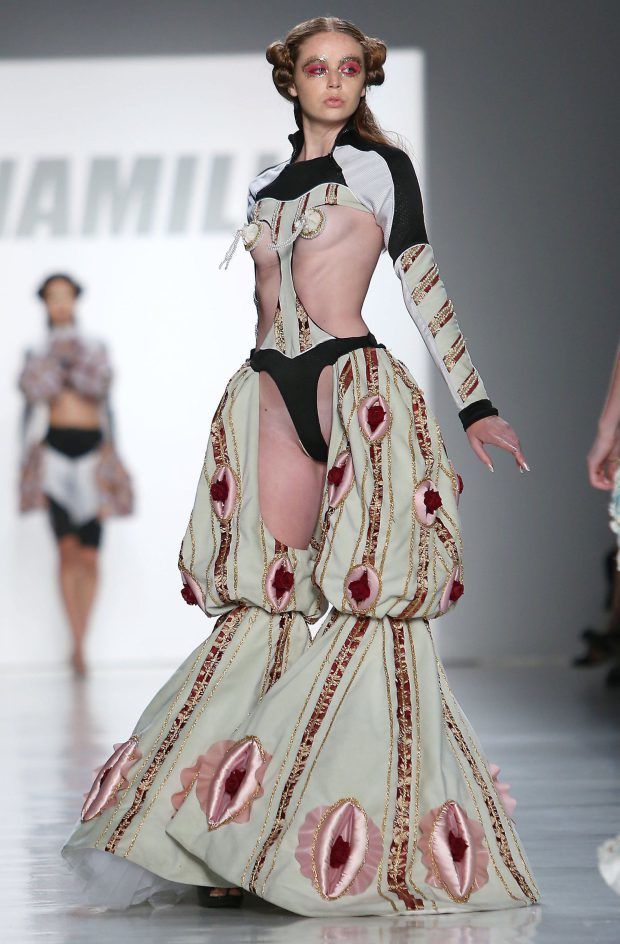 Bársonyból készült vaginák, gyöngyökkel kirakott puncik, ruhaujjba varrt nemi szervek lepték el a New York-i divathét kifutóját. A Namilia tavaszi kollekcióját teljes egészében a női nemi szerv tiszteletének szentelték, ami egyrészt nagyon szép, másrészt meglehetősen furcsa.