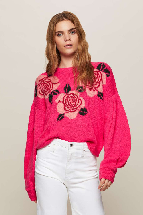 A rózsa motívum a szezon egyik legdivatosabb mintája, ami önmagában véve nem baj, abban az esetben, ha ízlésesen használják. Azonban ennek a trendnek is vannak vadhajtásai, például a képen látható pulóver.