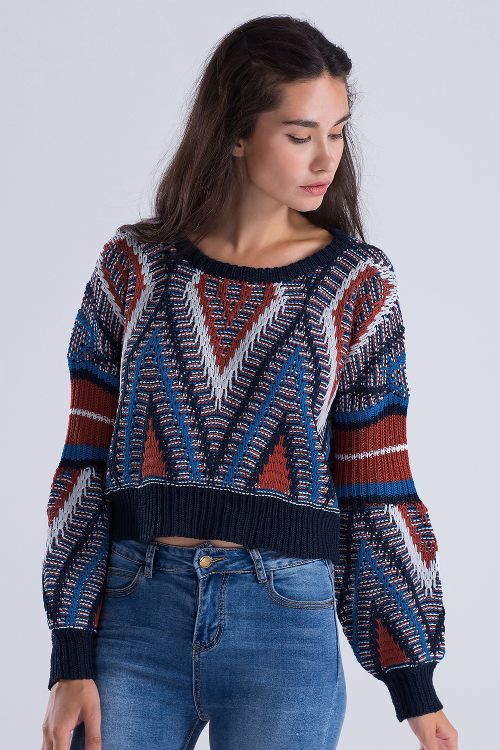 A nyolcvanas évek pusztító férfipulóvereinek szelleme kísért ezen a vesevillantós női pulcsin.