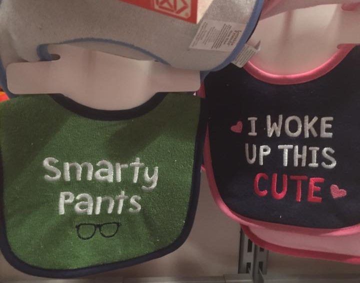 Az üzletben a fiúknak tervezett, kék meg zöld partedliken olyan feliratok állnak, mint Zseni fiú vagy Okostojás míg a szívecskékkel díszített, természetesen rózsaszín lány-partedliken az Ennyire cukin ébredtem és a Készen állok a #szelfimre feliratok díszelegnek. Talán banálisnak tűnhet már a gyerekcuccok üzenetein ennyire kiakadni, de nem még nagyobb hülyeség ilyen feliratokkal ellátni egy kisbabának szánt ruhadarabot, ami úgyis csak arra van, hogy összekenje a répapürével?