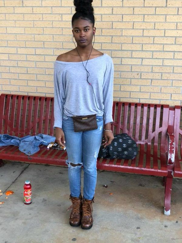 Ahogy a dühös anyuka által a Facebookra feltett fotón is látszik, a lányon az egyik vállát szabadon hagyó pulóver, farmernadrág és -dzseki, illetve bakancs volt.