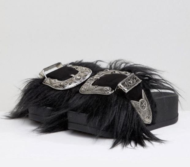 Az Asos legújabb dobása, a sűrű, hosszú fekete szőrös, csillogó csatos papucs például az a kategória, ami kilométerekről riasztja a divatrendőrséget. Az ízlésesnek a legnagyobb jóindulattal sem nevezhető surranó mentségére szóljon, hogy legalább műszőrből készül – ha ezért a borzalomért meg kellett volna halnia egy állatnak, az lenne az igazi tragédia.