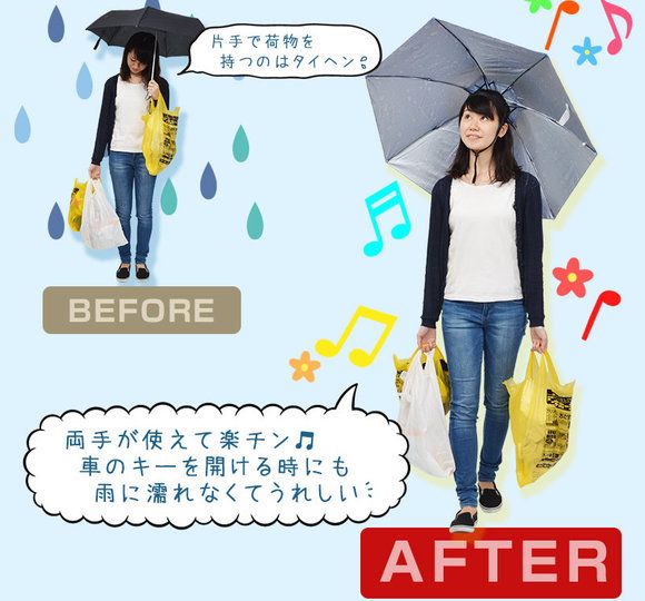 Esős időben intézni a bevásárlást kész kálvária, már ha az embernek nincs autója. Úgy cipekedni, hogy közben még az esernyőt is tartsuk, aztán elővegyünk a lakáskulcsot, netán még a postaládát is kiürítsük, igazi mutatvány. Volt eddig, ugyanis végre megszületett a nyakban hordható esernyő!