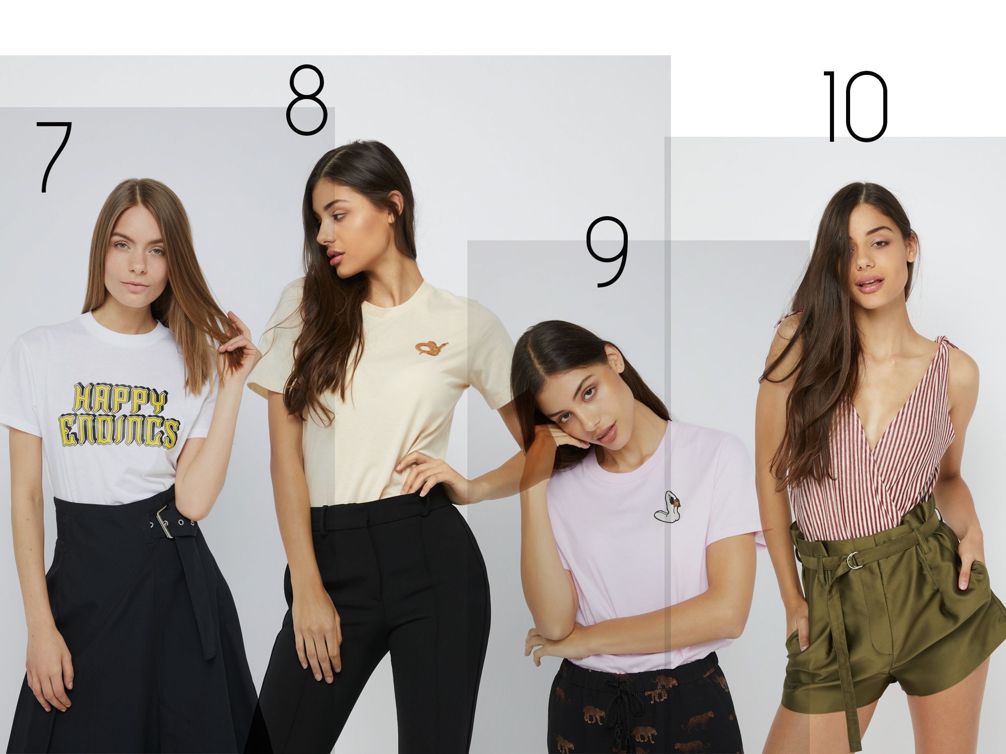 6. Csíkos és a has alatt megköthető. Ez a póló egyszerű nagyszerűsége – Nanushka / www.societestore.com