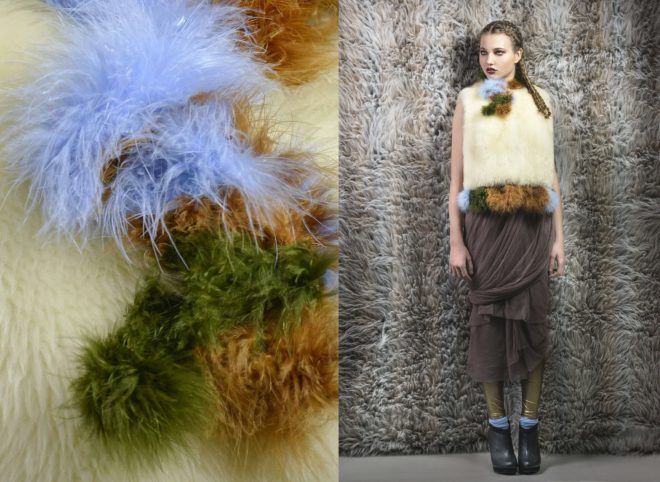 Ezzel a technikával majdnem húsz évvel ezelőtt kezdtem el kísérletezni egy ösztöndíj keretében Helsinkiben. A saját fejlesztésű „szőrfestés” alapanyaga egy luxusminőségű, rendkívül hosszú szálú műszőrme, amelyet egy speciális módszerrel felületkezelek. Ez tulajdonképpen egy háromdimenziós alkotómunka a textil felületén, amelynek az eredményeképpen új struktúrákat kapunk. Ez a szőrmét tömörebbé, vastagabbá, ugyanakkor rugalmasabbá is teszi, és lehetőséget ad a szabásvonalak elrejtésére is. A „Wonderfur” elnevezés nem is annyira a technikát takarja, hanem azt a vizuális hatást, amely végtermékként keletkezik. 2014-ben már elnyerte a Magyar Formatervezési Díj egyik különdíját, és nemrég nyertem egy hároméves ösztöndíjat, ami lehetőséget ad majd arra, hogy tovább dolgozzak ezen. Szeretnék egy picit hordhatóbb és egyben légiesebb vonalat is kialakítani, tervezem, hogy más anyagokkal, selyemmel és szövettel kombinálom majd a műszőrmét, és a különféle színek összemosását is szeretném felturbózni. Ebből néhány darab már el is készült.