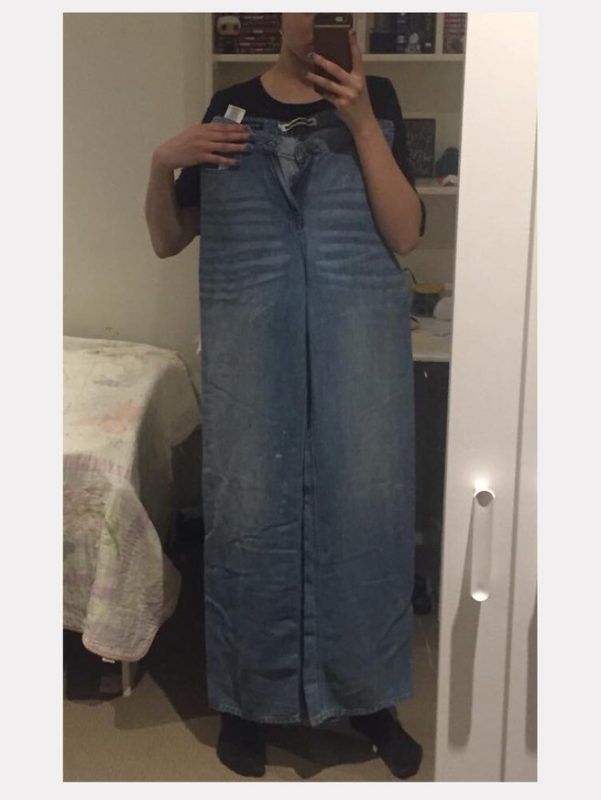 Az ausztrál Sarah többször is rendelt már az ASOS magas nőknek készült termékei közül és eddig mindig meg is volt elégedve azzal, amit kapott. Teljes lelki nyugalommal rendelte meg tehát a webáruházból ezt a bő szárú farmernadrágot is, mely a képen így nézett ki: