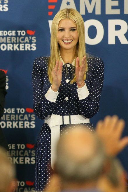 Nem ő azonban az első híresség, akin láthattuk ezt a ruhát. Ivanka Trump ugyanis egy ugyanilyenben jelent meg júliusban, egy kerekasztal-beszélgetésen Iowában.