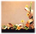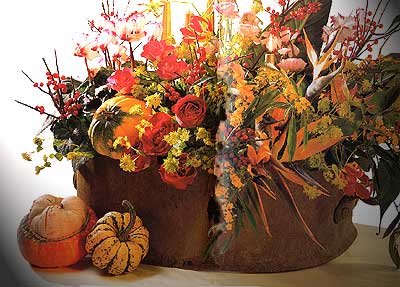 4. Ha a kompozíciót fonott kosárba, vagy egyéb vizet áteresztő alapra helyezzük, gondoskodjunk a vizet megfogó tálkáról, vagy műanyag fóliáról. 5. Figyeljünk a színhatásokra. A kompozíció színét meghatározza az alkalom, a környezet színe, a tál anyaga és színe.