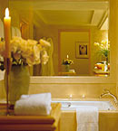 A fürdőszoba szintén lehet csalogató és érzéki. A fürdőkád szélén elhelyezett gyertyák, virágszirmos üvegcsék, egy finom ital két szép pohárral – tovább fokozhatják a hangulatot.