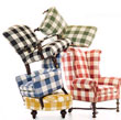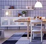 Friss, sportos hangulatot kelt a kockásba öltöztetett hall, előszoba vagy étkező. Az összhangot a minden felületen megjelenő kockás minta adja, de ez különböző színekben és különböző méretben jelenik meg. Nagy, sötétkék-világoskék kockás lehet a függöny, apró világos és sötétebb sárga kockás a terítő, a székpárnán a sötét és világoszöld kockás minta egy harmadik, köztes méretben jelenik meg, és így tovább.