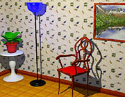 Hasonló hatást érhetünk el különböző formájú, háromszög, kör vagy ovális, élénk egyszínű, vagy csíkos szőnyegekkel, falvédőkkel. A fehér bútort rikítóvá teszi az alá helyezett vörös szőnyeg. Polcainkat szinte kicseréljük, ha hátsó felületüket, vagy magukat a polcokat különböző színűre festjük. A sok kép izgalmas látványt nyújthat az egyszínű, vagy komorabb bútordarabok mellett is.