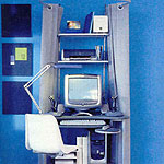 1. Modern és igazán egyedi, mindenesetre formabontó megoldásokkal bír ez a négyemeletes komputer-állvány. Ívesen hajlított, feketére festett csővázán cseresznyeszínű, vese alakú asztallap, illetve polcok állnak, maga a gép szinte lebeg rajta. Olyanok válasszák ezt a lendületes, fiatalos, kicsit bohém darabot, akik szeretik az extravaganciát, munkájuk közben nem kell sok papírt, forrásmunkát használniuk (csak így, csupaszon mutat jól az asztal), és akik különben is hajlamosak az eredetiségre. (K.I.D. Irodabútor Stúdió, Bp. Hungária krt 102. 251-2887)