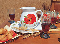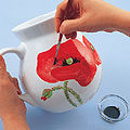 Ha elkészítjük ezt a pipacsos kancsót és tálat, büszkén kínálhatjuk belőlük a hűs limonádét és a házi pogácsát egy forró nyári napon. Első ránézésre talán nehéznek tűnhet a feladat, de sablonnal csak egy kis merészség kell hozzá