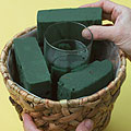 1. Az üveget állítsuk a kaspó közepébe. A tűzőhabot vágjuk akkora hasábokra, hogy a kaspó és az üveg közötti részt ki tudjuk tölteni velük. Alaposan áztassuk be, mielőtt a helyükre illesztenénk.