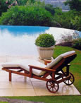 A kerekek csuda jól néznek ki, de nem csupán designból vannak ezekre az ugyancsak egzotikus fa napágyakra szerelve. Ha követnünk kell vele a nap irányát, esetleg megunva a perzselődést árnyékba az árnyékba húzódnánk vele a kerekek segítségével könnyedén megtehetjük.