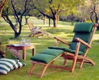 Még mindig fából, de kevésbé elegánsan. Ez a könnyedebb hangvételű pihenőágy lényegében egy hagyományos, karfás szék lábtámasszal megtoldva. Előnye, hogy kisebb helyen tárolható, egyszerűbben mozgatható, így a kert bármely részén elvonulhatunk vele.