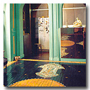 . Merész és egzotikus árnyalat az olívzöld, keleties hatású, éppen ezért illik extravagáns enteriőrökbe is. Hiszen olyan szín ez, amit nem lehet nem észrevenni. Jól mutat a fehérrel és a lakkozott, feketére festett felületekkel, s minden olyasvalamivel, ami eltér a megszokottól. Egy ilyen hall például – mintásra festett parkettájával, látványos térszerkezetével- olyan intenzív hatást kelt, hogy aki itt egyszer megfordul, az soha többé nem felejti el.