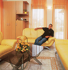 Ez egy negyvenhét négyzetméteres, egy légterű helyiség, mely a teljes kikapcsolódás élményét biztosítja. Van itt egy bárpult, egy dartsgép, hűtő, asztal, székek és házimozi. 2001-ben, amikor a világbajnokságról hazajöttünk, még csak szerkezetkész volt a ház, de a dühöngőt természetesen felavattuk. Másnap délután öttől nyolcig leburkoltam egy szobát ez most a vendégszoba , és határtalanul boldog voltam, hogy be tudok költözni. Az elmúlt pár évben folyamatosan azért dolgoztam, hogy minél szebb legyen az otthonunk.