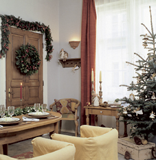 Semleges árnyalatokat használva, fehérre, halvány- és galambszürkére hangolták a tereket, ami tökéletes alapként szolgál a country stílusú enteriőrökhöz, ugyanakkor jobban illik házigazdáink személyiségéhez, életstílusához, mint a mediterrán, élénk színvilág. A méhviaszkezelt, illetve antikolt fehérre festett, régi és régies bútorok ugyanakkor meleggé és otthonossá teszik a lakást. Egy-egy színesebb foltot textilek, függönyök, kilimek, terítők segítségével azért becsempészett a lakásba a tervező és a háziasszony, aki az első itteni, közös karácsony örömére díszbe öltöztette egész otthonát. Nem fukarkodott a koszorúk, girlandok, asztali dekorációk, gyertyák és gyertyatartók használatával sem, az igazi főszereplők azonban természetesen az angyalkák lettek…