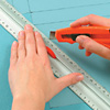A maradék 30×70 cm-es műanyag lapból vágjunk 8 darab csíkot a mellékletben található méretezési rajz szerint. Vágjuk be a szaggatott vonallal jelölt részeket. Az egyik csík közepéről vágjunk ki egy darabot az óra akasztójának megfelelő méretben. Ezután négy-négy csíkot merőlegesen egymásra helyezve és a bevágásokat egymásba csúsztatva állítsuk össze a rácsot.