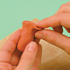 A nadrág elkészítéséhez gyúrjunk két kis hengert. Ujjaink