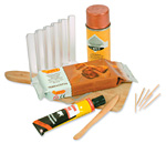 A fejhez gyúrjunk egy golyót, erre lapítsuk rá a két kart, majd egy darab gyurmához (vállrész) fogpiszkálóval rögzítsük őket. Nyomjuk a formát a műanyagra, és a száradási idő feléig hagyjuk rajta. Ezután emeljük le, hogy az alja is megszáradjon. Egy nap után ragaszszuk fel az elemeket a helyükre. A könyvtámasz felületét és az alakot bronz vagy rézszínű akrilspray-vel fújjuk le, így fémes hatású szobrocskát kapunk.