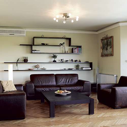 Bacsó Bori éppen ezért tekintette aktuális munkáját kihívásnak: úgy kellett egy elegáns, modern enteriőrt létrehoznia, hogy nem változtathatott még a parketta színén sem. A kétszintes lakás alsó szintjén csak apróbb változtatásokat eszközölhetett: így az ő javaslatára cserélték ki a meglévő konyhabútor frontjainak egy részét, de a falak halványzöld és bézs színén már nem módosíthatott. Így itt csak a bútorok alkalmazásával valósíthatta meg a tulajdonos és saját elképzeléseit. Szerencsére megegyeztek a kívánt stílusban: mivel mindkettőjüknek nagyon tetszenek a letisztult, egyszerű, funkcionális lakásbelsők, egyértelműen a minimalizmus mellett döntöttek.