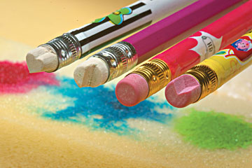 A ceruzák végén található radírok pecsétkészítésre igazán nagyszerűek. Ügyes kezű anyukák és apukák egyszerű formákat faraghatnak a henger alakú radírokból, az így készült nyomdából pedig a gyerekek kedvükre alkothatnak.