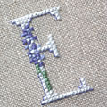 Először hímezzük ki a betű fehér szemeit, ezután a zöld színű szár következik. A virágnál a lila két árnyalatával dolgozzunk. Megkönnyíti munkánkat, ha két tűt használunk a két fonalhoz, mert szinte keresztszemenként kell színt váltani. Hangsúlyosabb lesz a betű képe, ha a leszámolható mintán látható helyeken tűzőöltéssel kihímezzük a körvonalat. A hímzőfonal egy szálát használjuk, s egy öltés nagysága egyezzen meg egy keresztszem nagyságával.