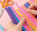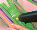 A szívószálakat egyesével rögzítsük. Ha a szívószálak feje mozdítható, lazán kihajtogatva őket kusza koronát alkothatunk a vázánkra.