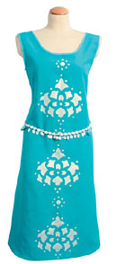 Ha már van egy sima vonalú, könnyű lenvászon ruhánk, miért ne varrnánk további hasonló darabokat – más és más színben, különböző díszítéssel? Szinte minden alkalomra – munkába, kikapcsolódáshoz, strandra, de akár az esti partihoz is – találunk könnyen elkészíthető, egyéniségünket leginkább tükröző mintát és textildíszítési technikát. Akár az egzotikus ornamentikát, akár a színes virágokat vagy a keleties hangulatot idéző motívumokat választjuk (írhatunk ránk jellemző, kedvenc idézetet is!), biztos, hogy a sokszor bosszantó „ruhatalálkozó” ebben a viseletben garantáltan elmarad. Az általunk kitalált és kipróbált díszítéseket mellékletünkben megtalálják.